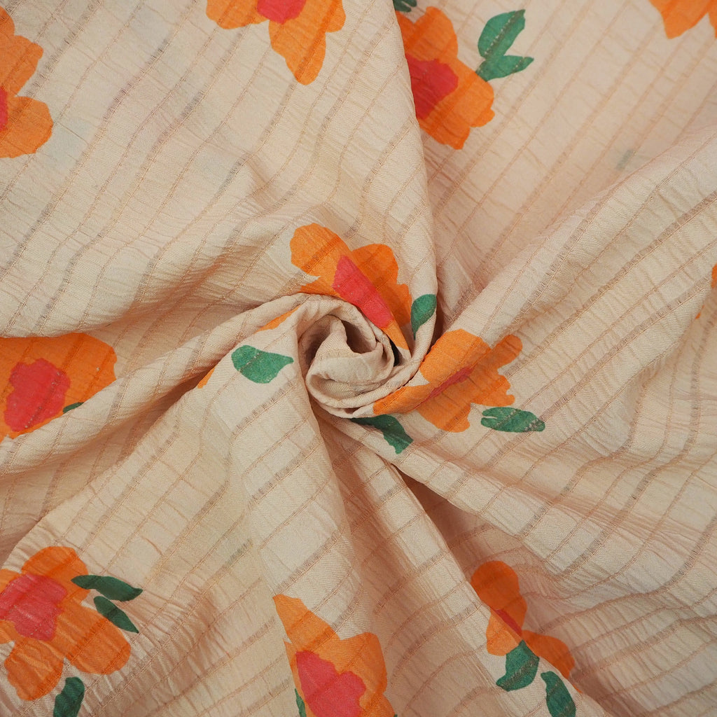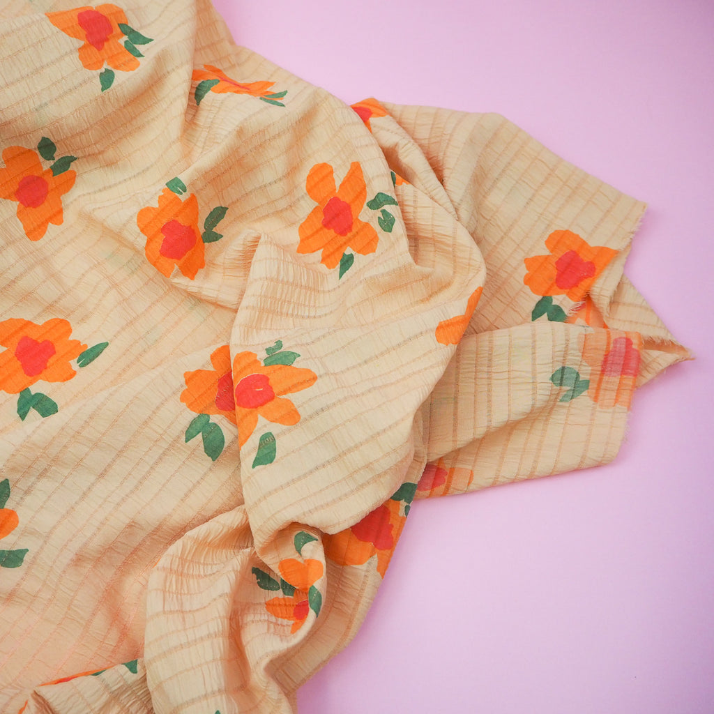 Big Flower Stripe Orange - Viscose Seersucker