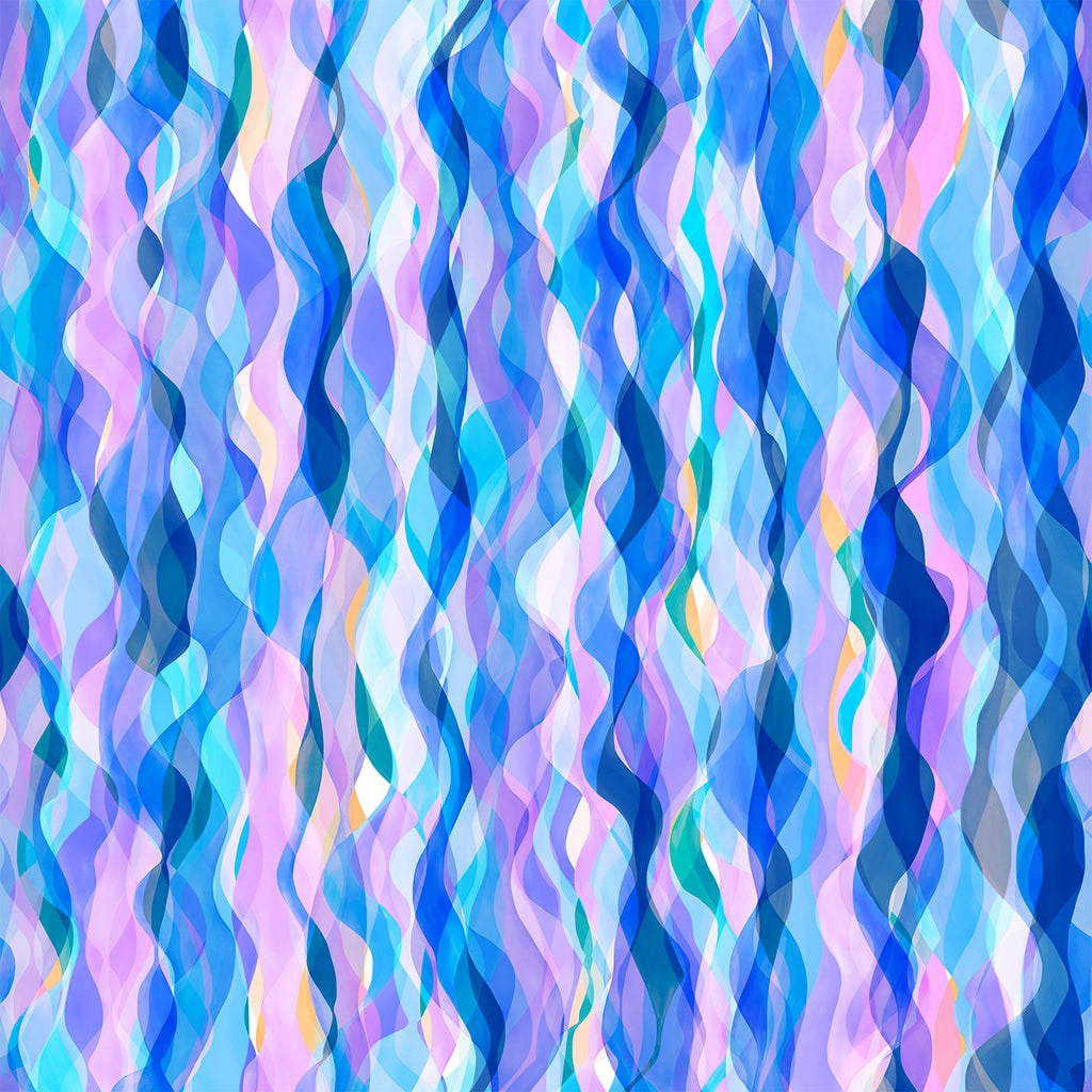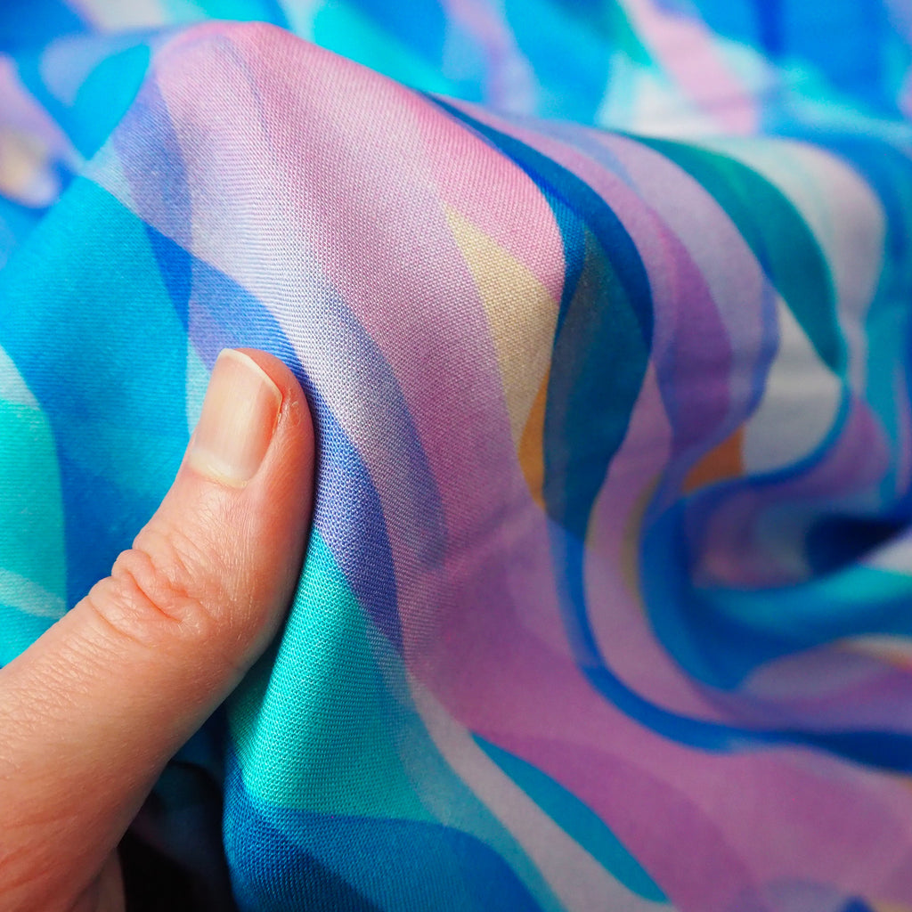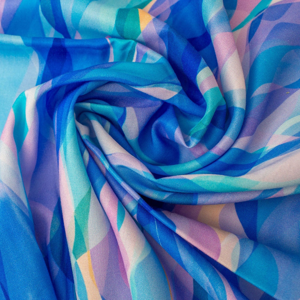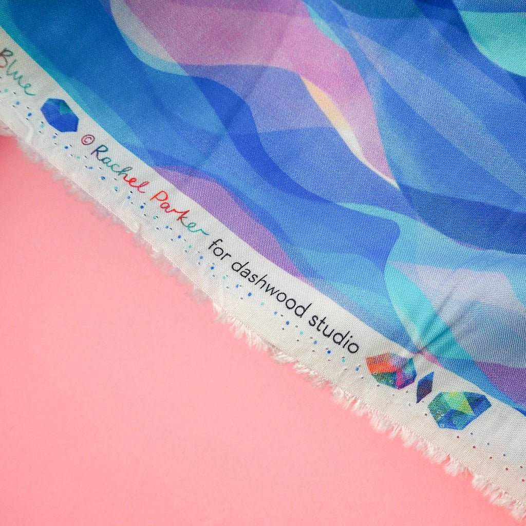 A soft and floaty rayon fabric with a beautiful blue waves from Rachel Parker's Chroma collection.