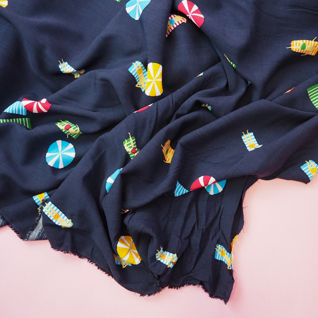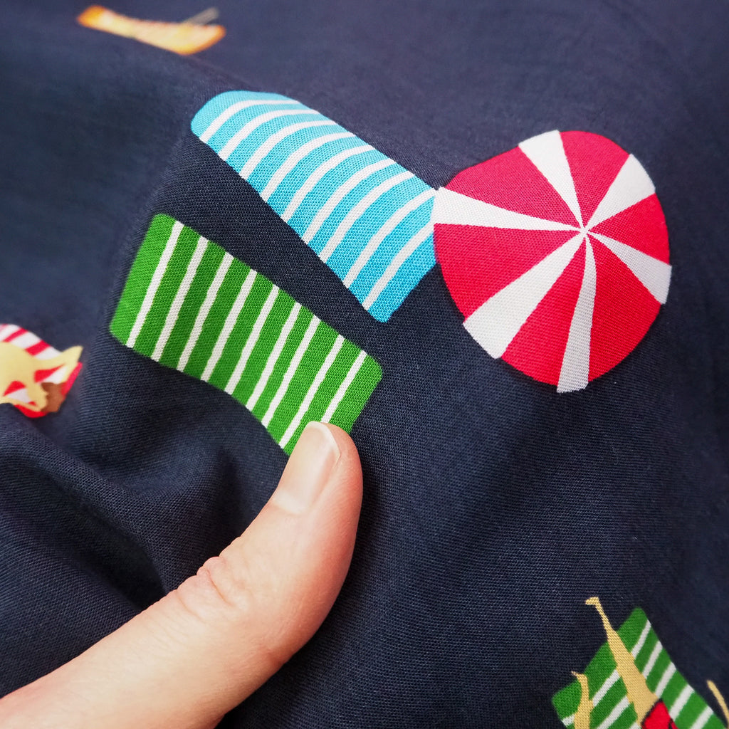 This lovely holiday print viscose fabric is floaty and light with beautiful drape.
